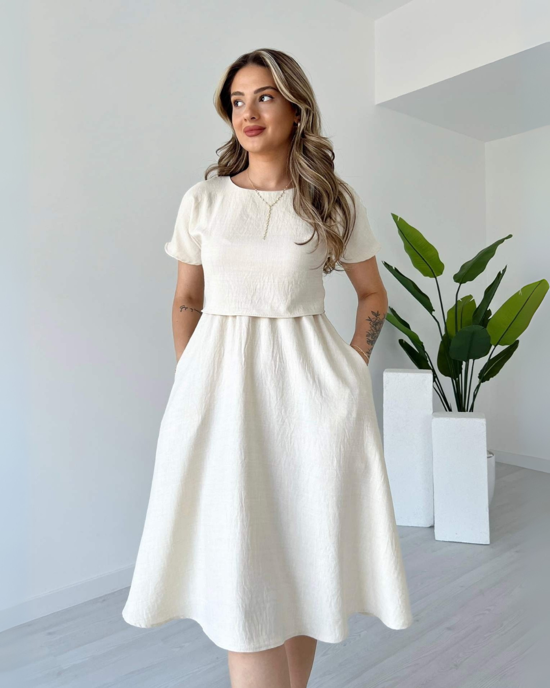 Easy-to-wear midi dress crafted for everyday comfort, featuring pockets and a soft texture that feels gentle against the skin.
